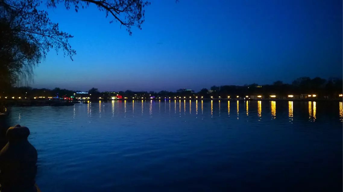 虽然称为夜景,但夜景的最佳拍摄时间可不是在夜里。因为夜里的天空已经完全暗下来了,拍摄出来的照片中天空部分几乎是全黑的,没有任何层次,使得照片很失衡,缺少美感。拍摄夜景的时机是晴朗的天气里太阳刚刚落山后的那段时间,一般也就十几二十分钟,最佳时间更短。此时城市的灯光已经亮起,而天空还没有完全暗下来。此时拍摄夜景,照中的灯光显示出耀眼的灿烂,而天空中又呈现出美丽的深蓝色,有着丰富的层次,从而可以让照片具有很高的观赏性。下面这两张就是我在北京的后海拍摄的(为了便于上传,压缩了照片的分辨率,未做其它调整)。