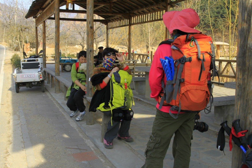 走到车前,正遇一帅哥携一美女赶到。帅哥很熟络地喊着我的名字和我打招呼,我却死活想不起他是谁来,又不好意思问。后来在徒步过程中实在忍不住问了,原来是懒猫。上次太舟坞香山活动时一起走过,只是那次人多,我又不擅长记人,所以没认出来。因为那次我吹了一首陶笛曲,所以他对我印象比较深。