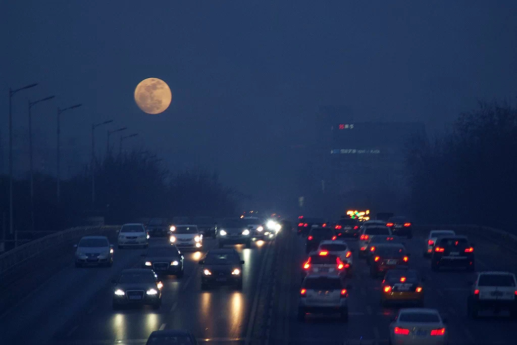 回家的时候,月亮已经升起来了。虽有淡淡雾霾,但遮不住月的光华。在月光的陪伴下回到了家,结束了这一天的快乐旅程。