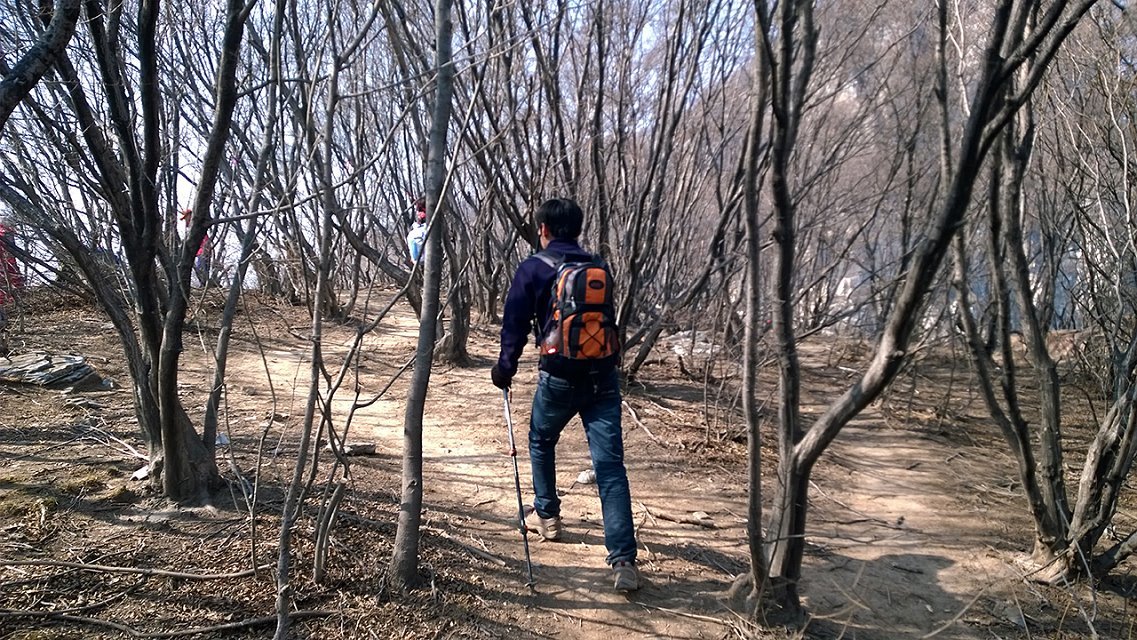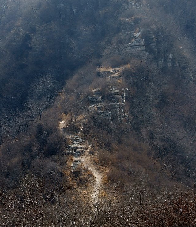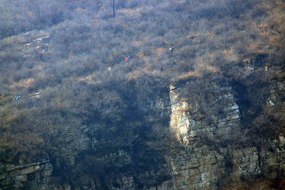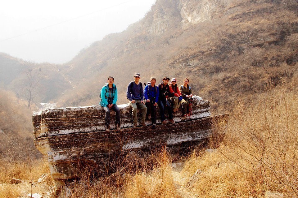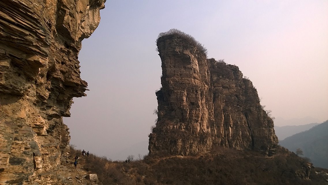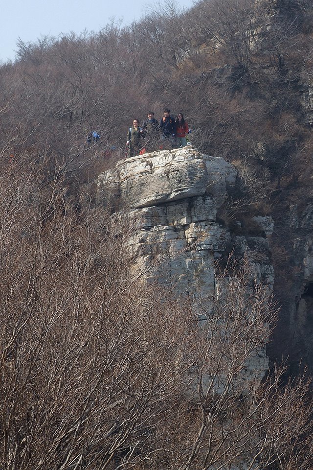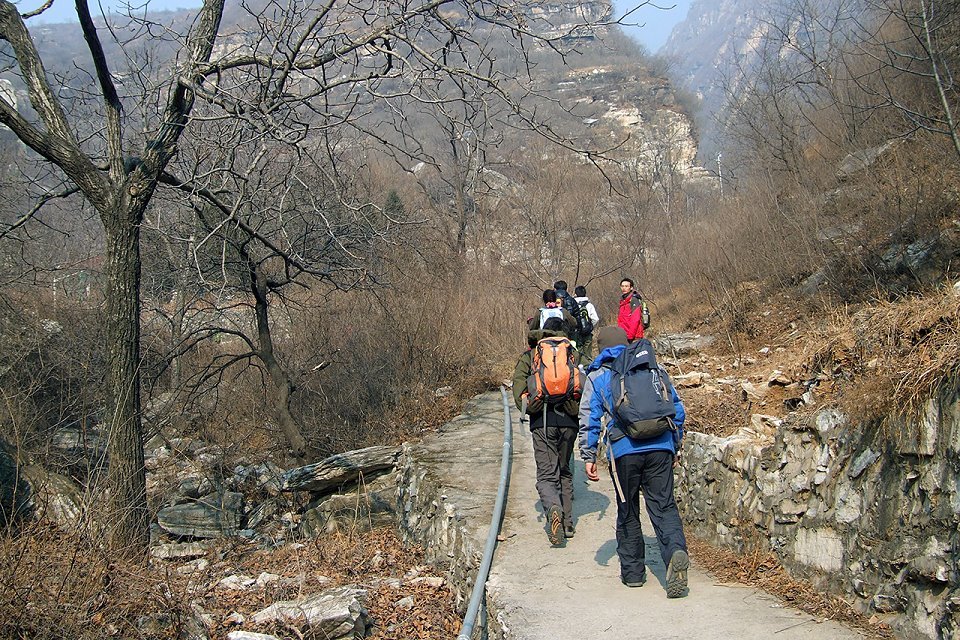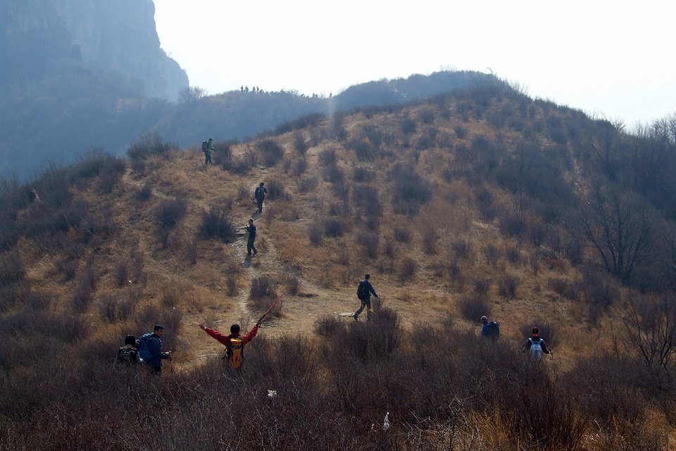 大家说说笑笑一路前行。小免(女士)说:我想要个小三儿,给我个小三儿吧。我回答:小三儿没有,“小四儿”(带队驴友的网名)倒有一枚。某位驴友说,今天这天不好,看起来雾蒙蒙的。我说不对,这叫霾蒙蒙的。
