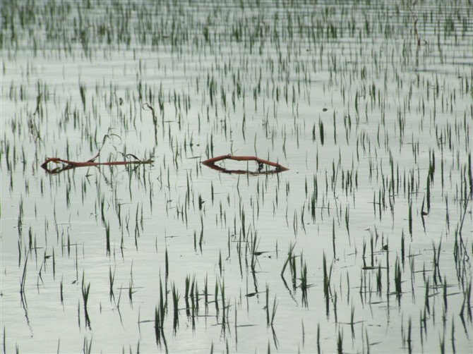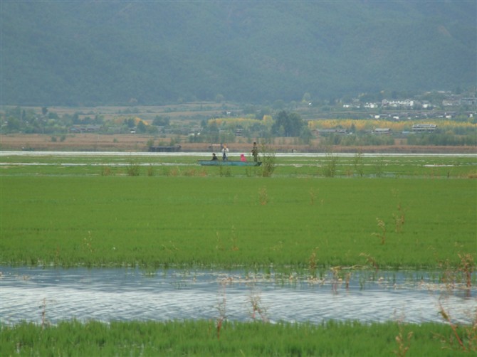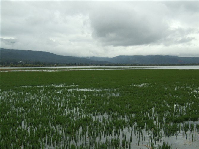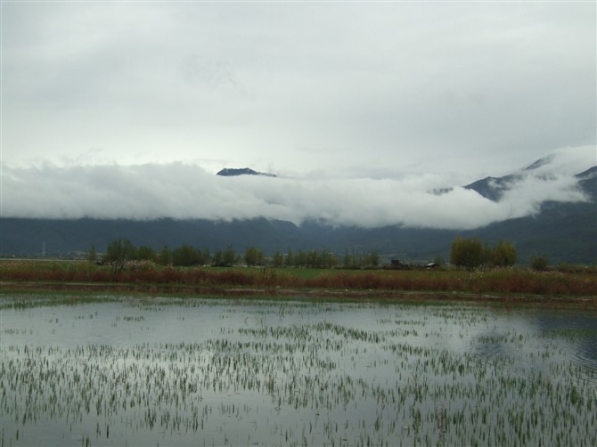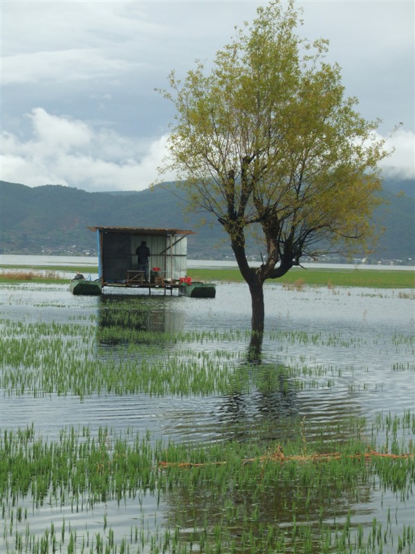 据纳西族的向导说,这边从去年十一至今年六月一滴雨都没下,而最近又下得太多,草原都淹没在水下了,因此没能见到美丽的高山草原。不过,草原的草微露出水面,别有一番风味。