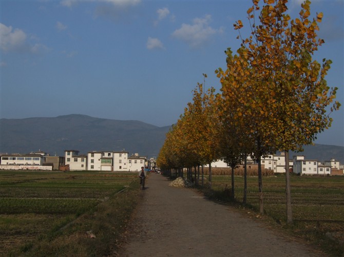 从喜洲回来,时间还早,就沿着一条乡间小路步行到洱海边上坐了一会。
