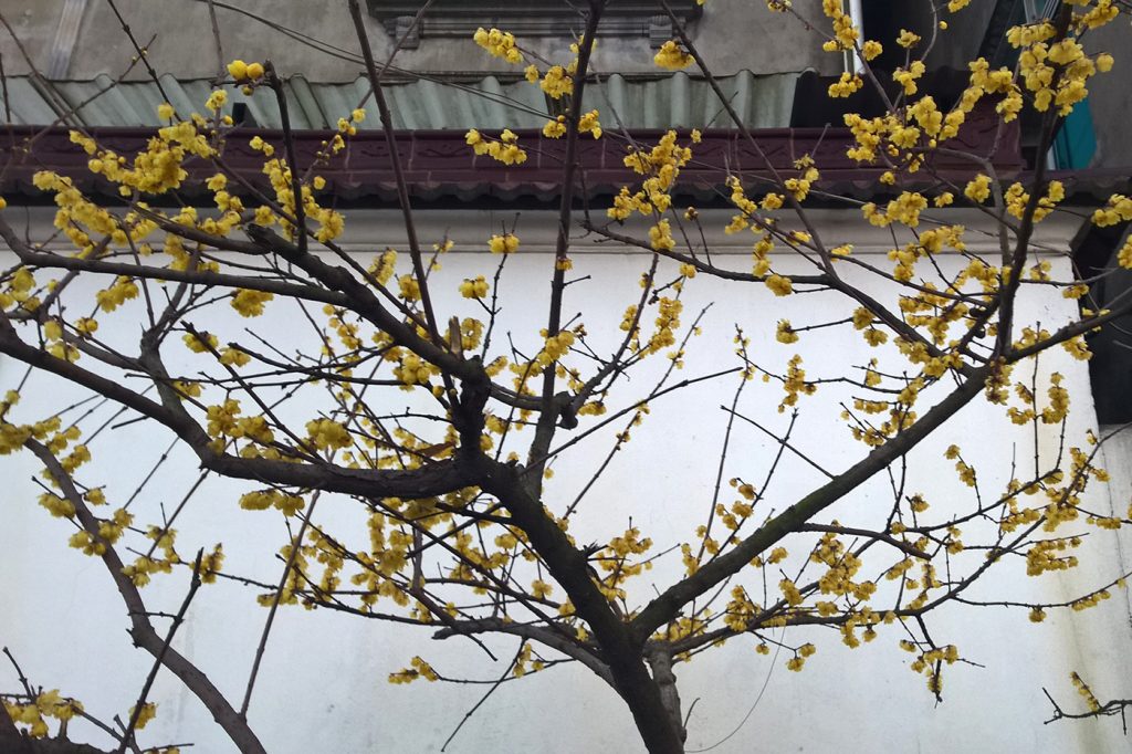 来苏州之前,从来没见过腊梅,甚至连腊梅的照片都没见过。虽然知道北京植物园的卧佛寺里有几株有名的腊梅,但一直没有机会去看。来到苏州的第一个冬天,发现楼下墙角处有一丛矮木,枝条上开着淡淡的黄花,毫不犹豫的就认定:好美的腊梅!